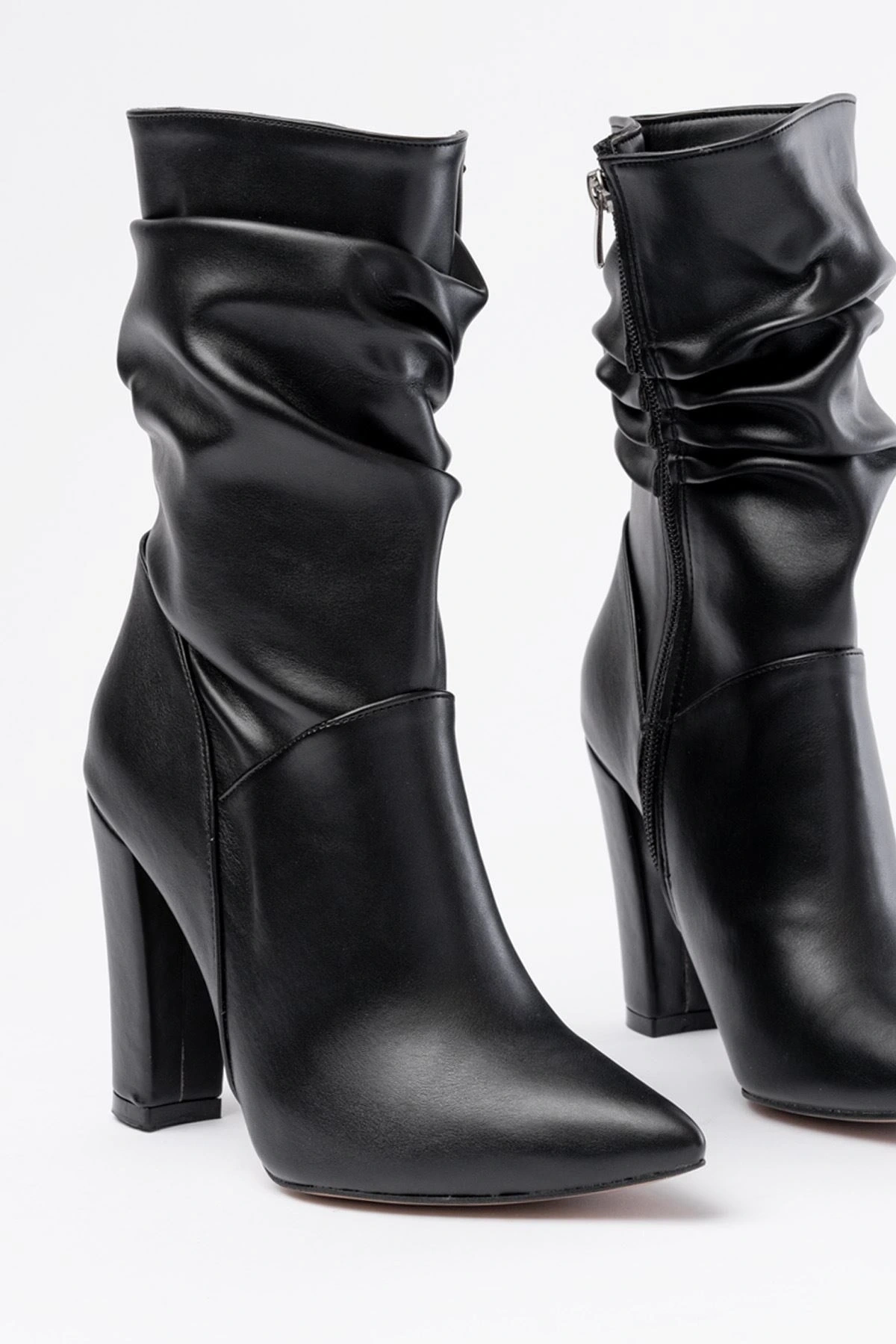 VRT-4815 Siyah Yüksek Kalın Topuklu Körüklü Fermuarlı Kadın Bot