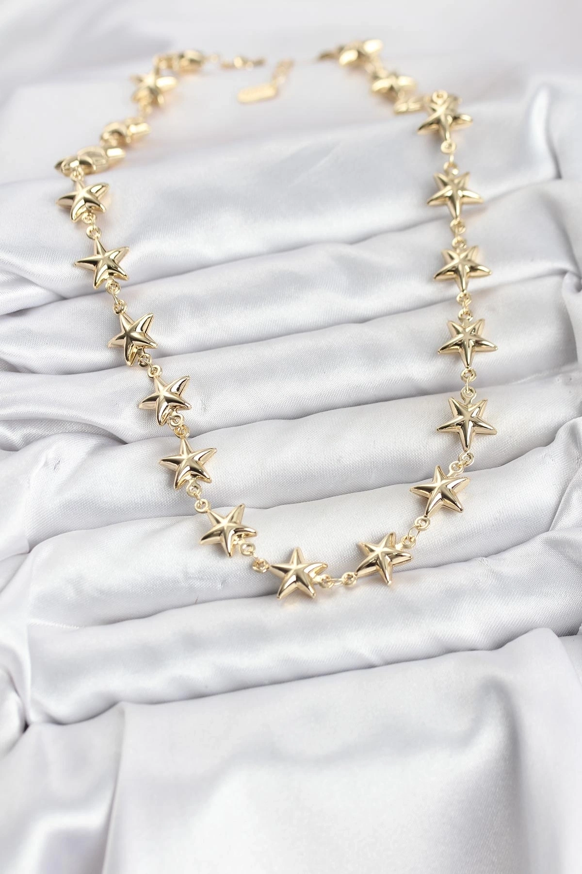 Yıldız Model Pirinç Gold Renk Kadın Kolye