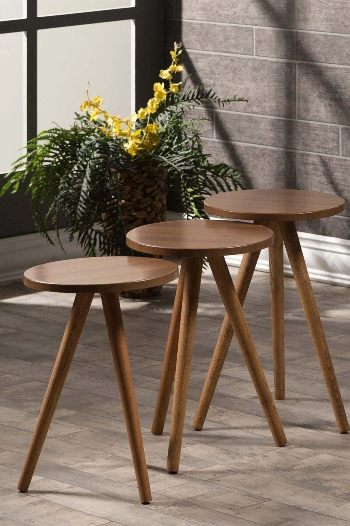 Ürün 1.Kalite Ağaç Ayaktır ; Ayaklar özel cnc de konik olarak çekilmektedir.. ORJİNALDİR. (Süpürge sapı şeklinde değildir) ; Ayaklar özel karışım dış cephe boyası ile boyanmaktadır.(pinotex değildir) ; Üst Tablalar Yonga Levha Olup Kurulumu Çok Basittir. ; Kenar bantlar 1.sınıf pvc ile bantlanmıştır. ; Tüm Üst Tabla Çapları 34 Cm Dir ; Yükseklik 3 Farklı Boy Büyük Sehpa 52 Cm Orta Sehpa 49 Cm Küçük Sehpa 46 Cm Dir.. ; Gerekli tüm aparatlar ve kurulum şeması koli içinde mevcuttur. ;