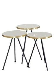 Zigon Sehpa 3 Lü Siyah Metal Ayak Gold Krem
