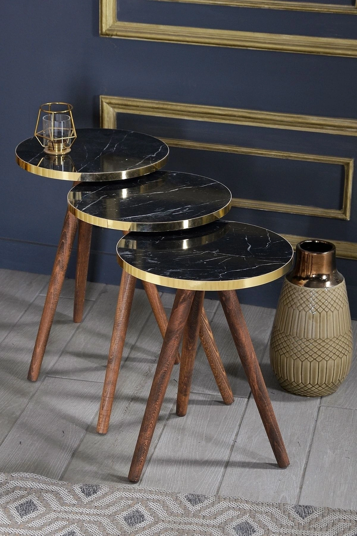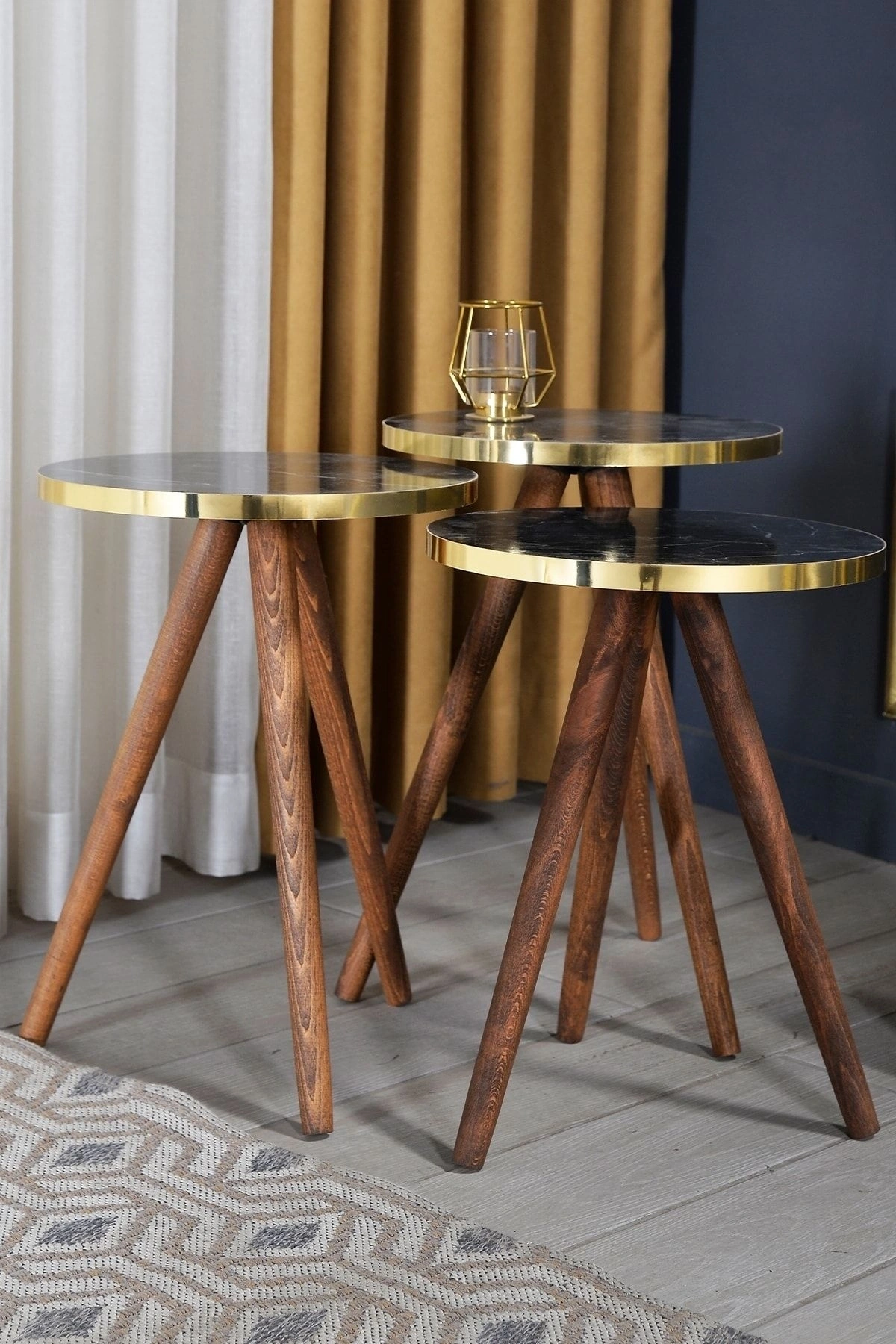 Zigon Sehpa 3'lü Ahşap Torna Ayak Altın Bendir 2098