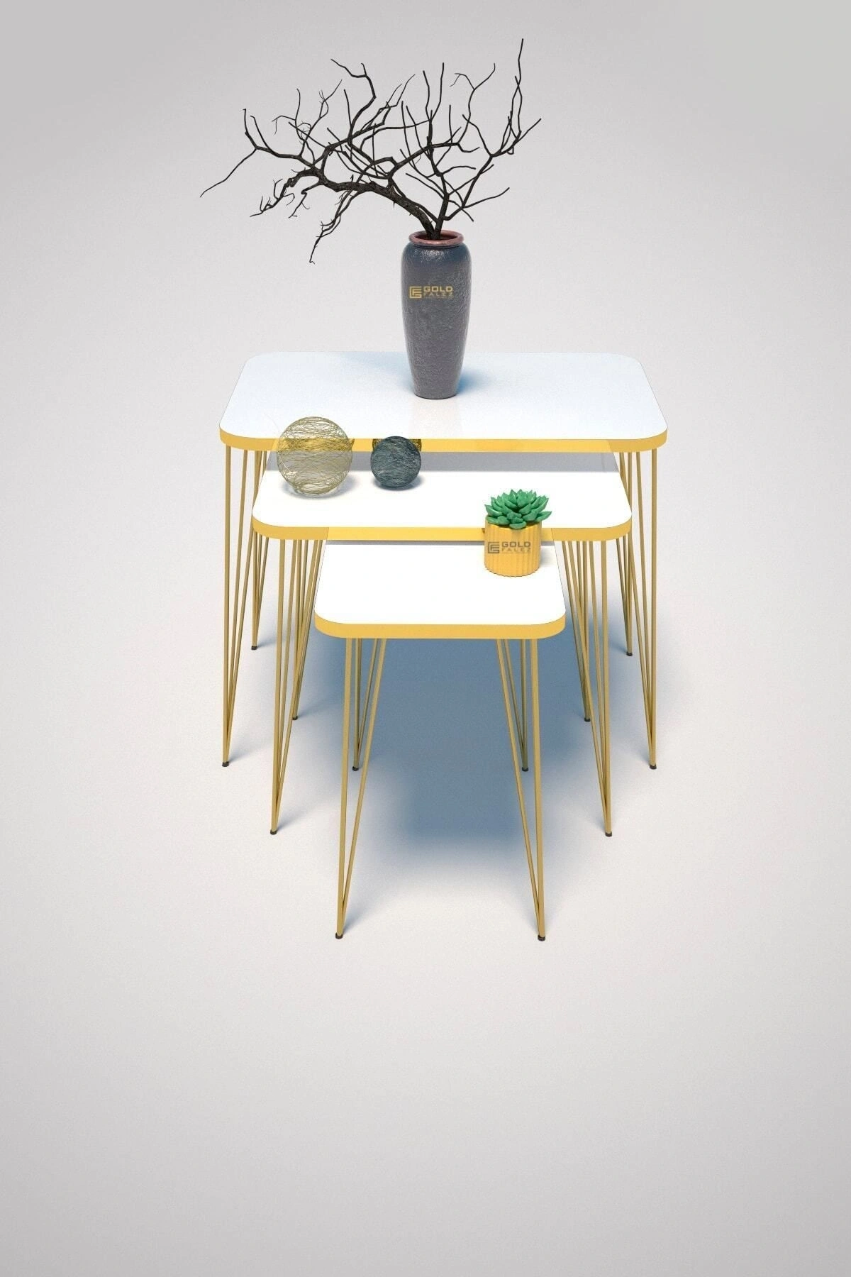 ZİGON SEHPA ÖLÇÜLER: ; ZİGON BÜYÜK YÜKSEKLİK :55 CM EN:37 BOY:28 ; ZİGON ORTA YÜKSEKLİK :51 CM EN:37 BOY:44,5 ; ZİGON KÜÇÜK YÜKSEKLİK:47 CM EN:37 BOY:60 ; Kenarları 1. sınıf ÖZEL ÜRETİM GOLD PVC bant ile kaplıdır. ; Kullanılan malzeme TSE, Avrupa Birliği EN, ISO 9001 ve FSC belgelerine sahiptir. ; Ayaklar 1.kalite Metaldir. ; Paketlerde kolay kurulum için gerekli tüm vida ve aksesuarlar bulunmaktadır. ; Ürünün montajı oldukça kolaydır.Basit el aletleri ile kolayca kurulum yapabilirsiniz. ; Hızlı ve hatasız kurulum için parça üzerinde kurulum şeması ile uyumlu parça bulunmaktadır. ; Üzerinde bulunan aksesuarlar dahil değildir. ;