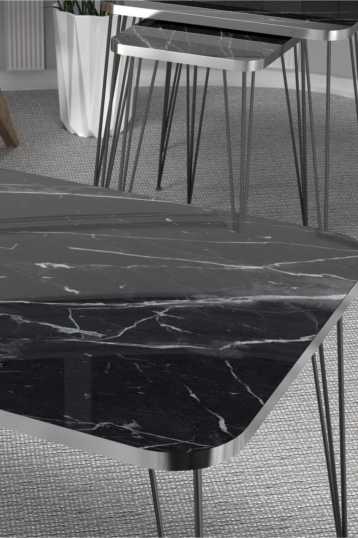 ORTA SEHPA: EN BOY:50*90 ORTA SEHPA AYAK YÜKSEKLİK:43 CM ; ZİGON SEHPA ÖLÇÜLER: ; BÜYÜK ZİGON YÜKSEKLİK:55 CM EN:37 BOY:60 ; ORTA ZİGON YÜKSEKLİK :51 CM EN:37 BOY:44,5; KÜÇÜK ZİGON YÜKSEKLİK:47 CM EN:37 BOY:28; Kenarları 1. sınıf ÖZEL ÜRETİM GÜMÜŞ PVC bant ile kaplıdır. ; Orta Sehpa ve 3.lü Zigon Sehpa Toplam 4 Parça Gönderim Sağlanmaktadır.. ; Kullanılan malzemeTSE, Avrupa Birliği EN, ISO 9001 ve FSC belgelerine sahiptir. ; Ayaklar 1.kalite Metaldir. ; Paketlerde kolay kurulum için gerekli tüm vida ve aksesuarlar bulunmaktadır. ; Ürünlerimiz DEMONTE olarak gönderilmektedir ve montajı oldukça kolaydır. Basit el aletleri (tornavida ya da matkap) ile kolayca kurulum yapabilirsiniz. ; Hızlı ve hatasız kurulum için parça üzerinde kurulum şeması ile uyumlu parça bulunmaktadır. ;