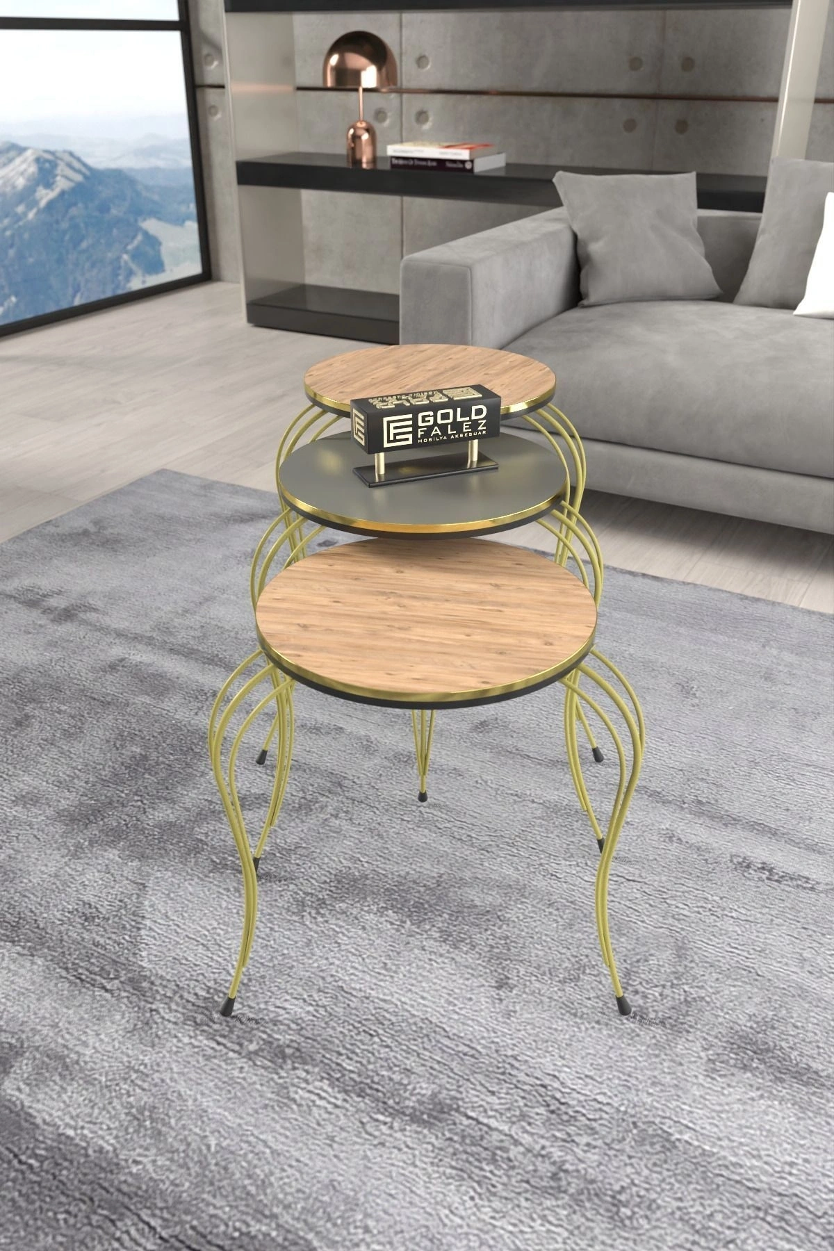 ZİGON SEHPA LÜKENS ÇİFT GOLD ANTRASİT CEVİZ