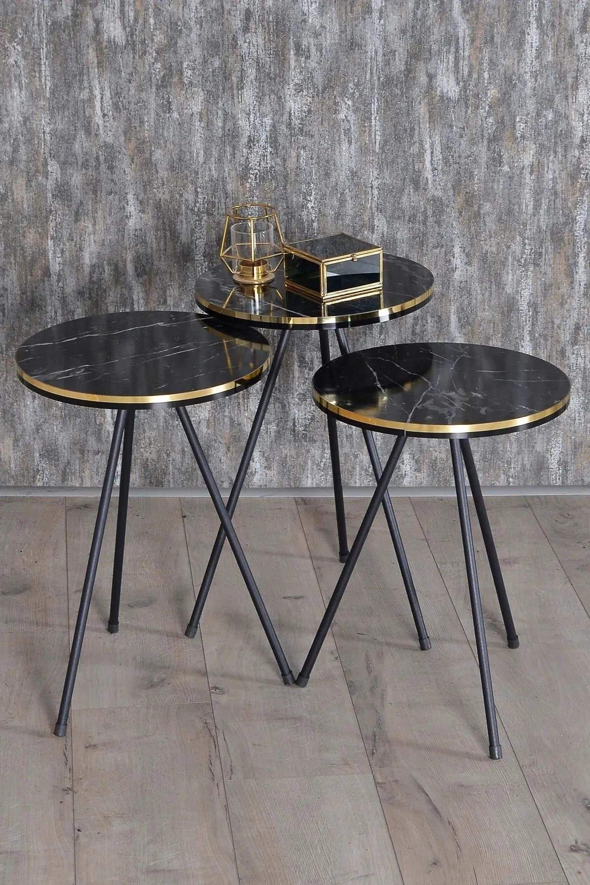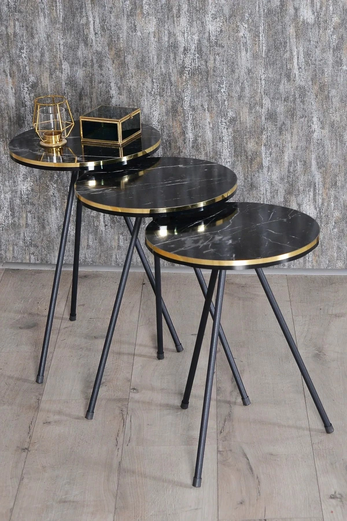 Zigon Sehpa Siyah Metal Ayak Çift Altın Bendir 1081