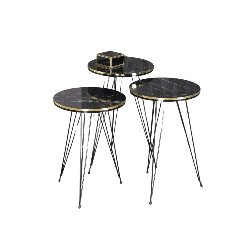 Zigon Sehpa Siyah Tel Ayak Çift Altın Bendir 1049