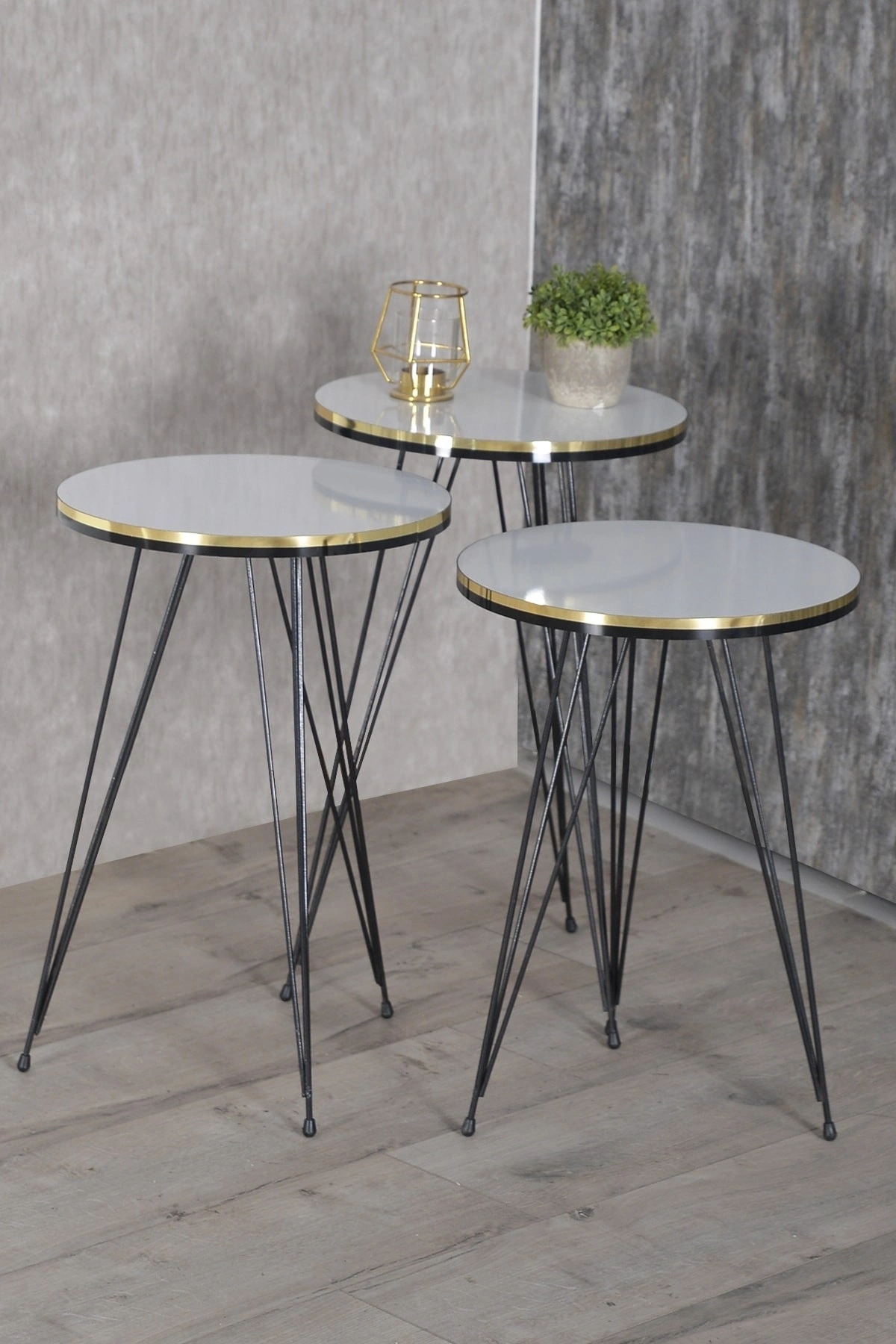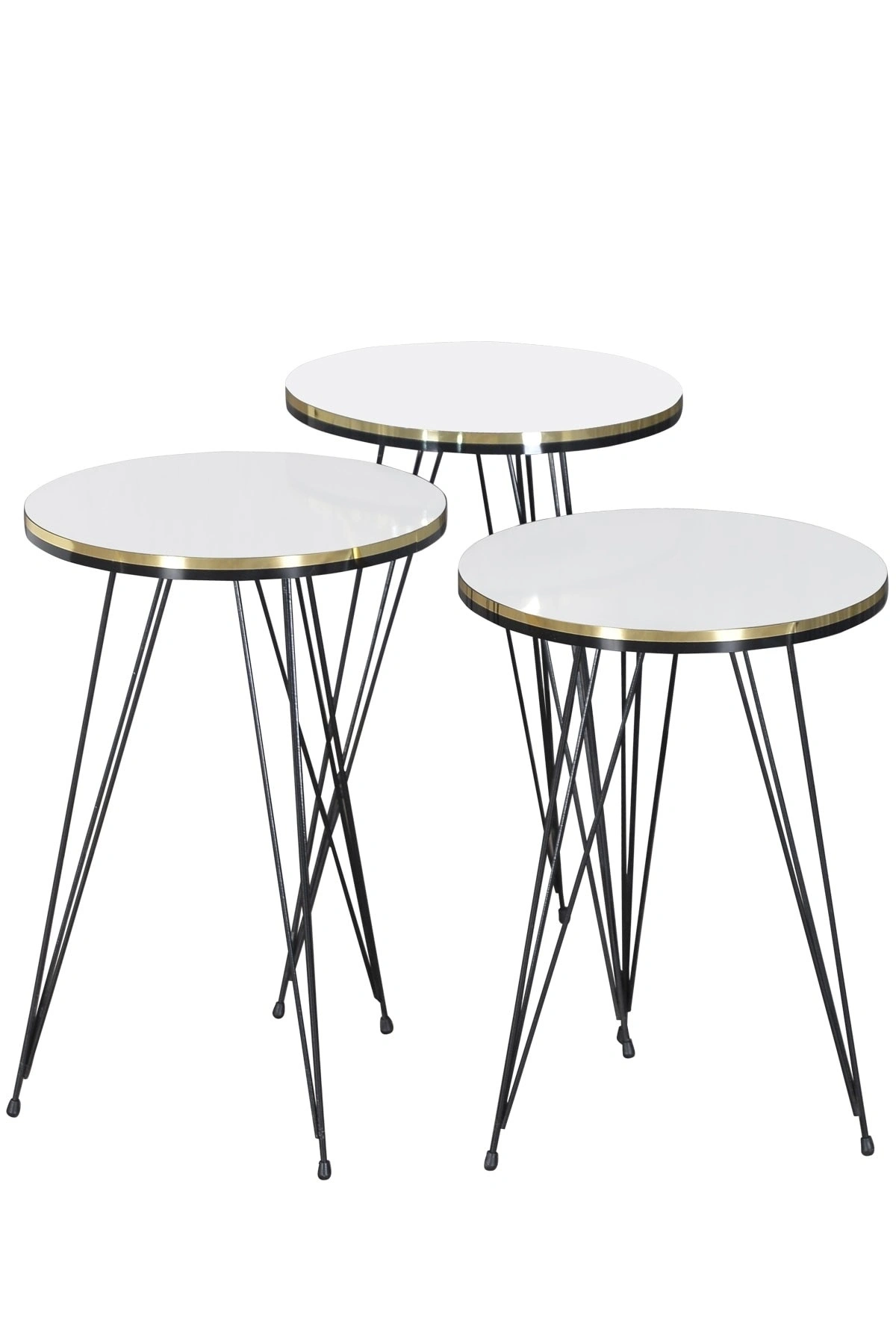 Zigon Sehpa Siyah Tel Ayak Çift Altın Beyaz 1046