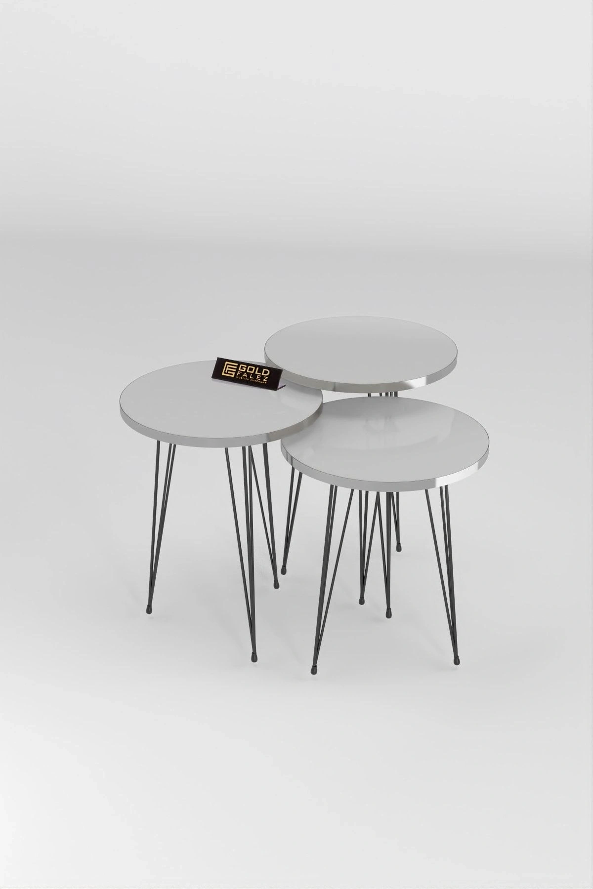 Zigon Sehpa Siyah Tel Ayak Gümüş Beyaz Zigon