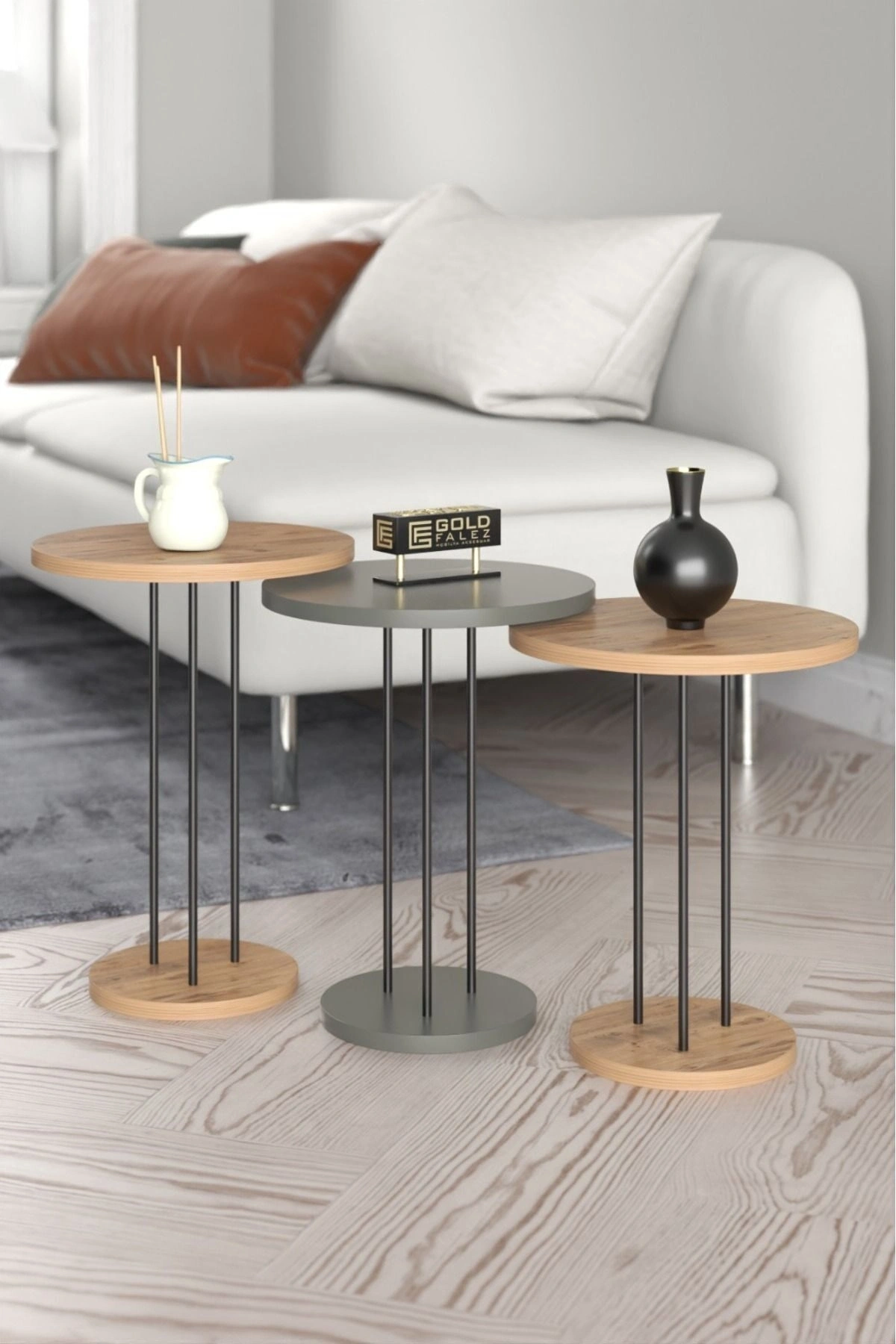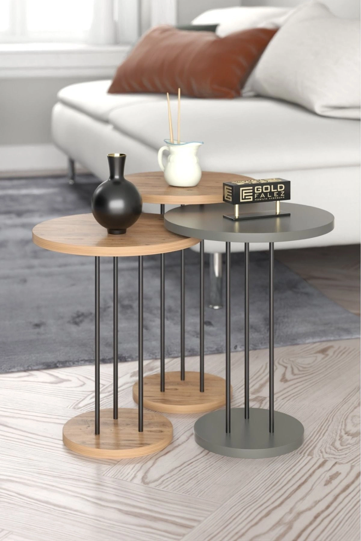 Ürün ölçüleri: ; · Tum ust tablalar 34 çaptır ; · Tum alt tablalar: 22 çaptır ; · Ayak yukseklik ; · Uzun ayak:48 cm ; · Orta boy ayak: 45 cm ; · Kucuk boy ayak:42 cm ; · Ust tabla yonga levha olup ayaklari 1.kalite metaldir. ; · Kenarları 1. sınıf PVC bant ile kaplıdır. ; · Uzun sure kullanim olmasi adina ürünün ortasinda 3 adet boru metal ayak mevcuttur. ; · Kullanılan malzeme TSE, Avrupa Birliği EN, ISO 9001 ve FSC belgelerinesahiptir. ; · Paketlerde kolay kurulum için gerekli tüm vida ve aksesuarlar bulunmaktadır. ; · Ürünün montajı oldukça kolaydır. Basit el aletleri ile kolayca kurulum yapabilirsiniz. ; · Hızlı ve hatasız kurulum için parça üzerinde kurulum şeması ile uyumlu parça bulunmaktadır. ; · Üzerinde bulunan aksesuarlar dahil değildir. ;