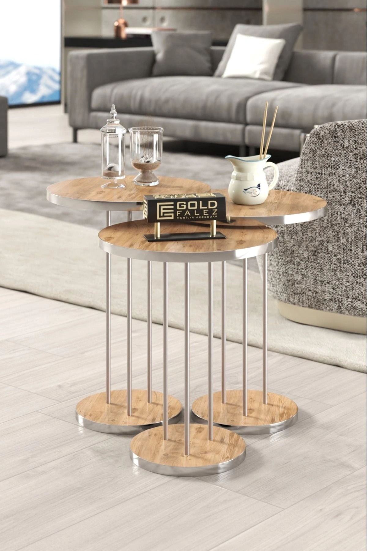 Zigon Sehpa Terra Gümüş Ceviz