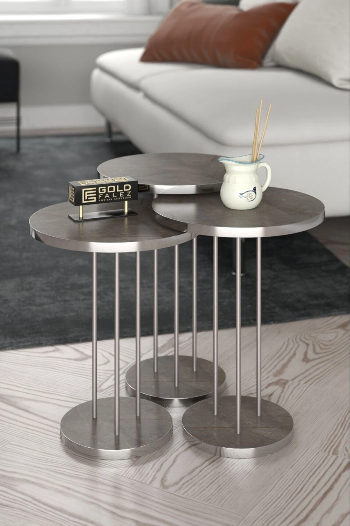 · Ürün ölçüleri: · Tumust tablalar 34 çaptır · Tum alt tablalar: 22 çaptır · Ayakyukseklik; · Uzunayak:48 cm · Ortaboy ayak: 45 cm · Kucukboy ayak:42 cm · Ust tablayonga levha olup ayaklari 1.kalite metaldir. · Kenarları 1. sınıf PVC bant ilekaplıdır. · Uzunsure kullanim olmasi adina urunun ortasinda 3 adet boru metal ayak mevcuttur. · Kullanılan malzeme TSE, Avrupa Birliği EN, ISO 9001 ve FSC belgelerinesahiptir. · Paketlerde kolay kurulum için gerekli tüm vida ve aksesuarlarbulunmaktadır. · Ürünün montajı oldukça kolaydır.Basit el aletleri ile kolayca kurulumyapabilirsiniz. · Hızlı ve hatasız kurulum için parça üzerinde kurulum şeması ile uyumluparça bulunmaktadır. · Üzerinde bulunan aksesuarlar dahil değildir. · Kenarları 1. sınıf ÖZEL ÜRETİM KENDİ RENGİ PVC bant ile kaplıdır. · Kullanılan malzeme TSE, Avrupa Birliği EN, ISO 9001 ve FSC belgelerinesahiptir. · Ayaklar 1.kalite Metaldir. · Paketlerde kolay kurulum için gerekli tüm vida ve aksesuarlarbulunmaktadır.(vidalaması sizlere aittir) · Ürünün montajı oldukça kolaydır basit el aletleri ile kolayca kurulumyapabilirsiniz. (tornavida / matkap) · Hızlı ve hatasız kurulum için parça üzerinde kurulum şeması ile uyumluparça bulunmaktadır. · Üzerinde bulunanaksesuarlar dahil değildir.