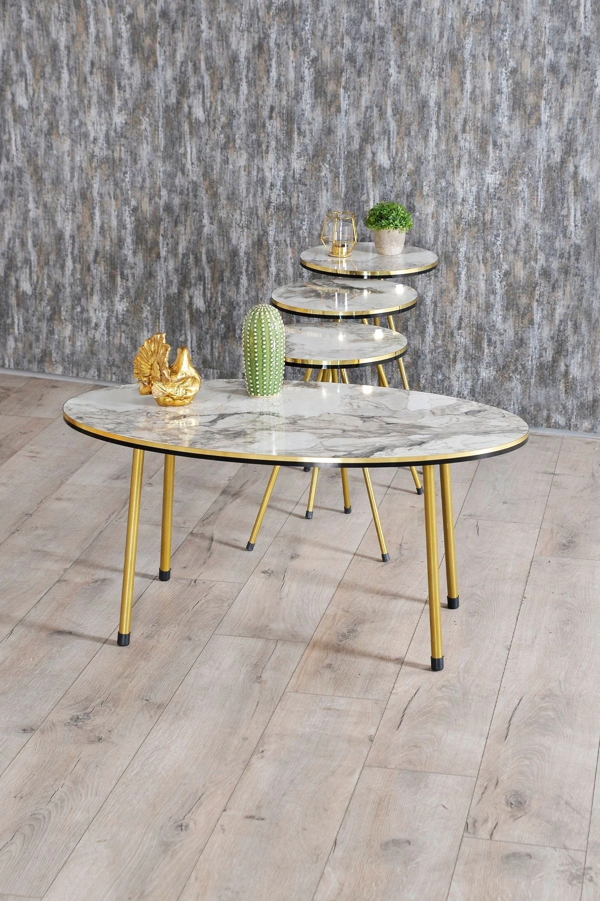ORTA SEHPA:EN BOY:50*90 ORTA SEHPA YÜKSEKLİK:42 CM ; ZİGON SEHPA TÜM ÜST ÇAPLAR:34 CM ; ZİGON KÜÇÜK YÜKSEKLİK :46 CM ; ZİGON ORTA YÜKSEKLİK :49 CM ; ZİGON BÜYÜK YÜKSEKLİK:52 CM; Kenarları 1. sınıf ÖZEL ÜRETİM SİYAH-GOLD PVC bant ile kaplıdır.; Orta Sehpa ve 3.lü Zigon Sehpa Toplam 4 Parça Gönderim Sağlanmaktadır.. ; ?Kullanılan malzemeTSE, Avrupa Birliği EN, ISO 9001 ve FSC belgelerine sahiptir. ; Ayaklar 1.kalite Metaldir. ; Paketlerde kolay kurulum için gerekli tüm vida ve aksesuarlar bulunmaktadır. ; Ürünün montajı oldukça kolaydır.Basit el aletleri ile kolayca kurulum yapabilirsiniz. ; Hızlı ve hatasız kurulum için parça üzerinde kurulum şeması ile uyumlu parça bulunmaktadır.;