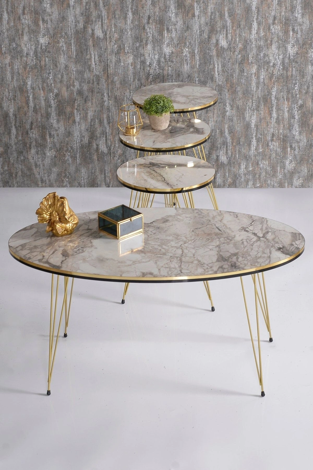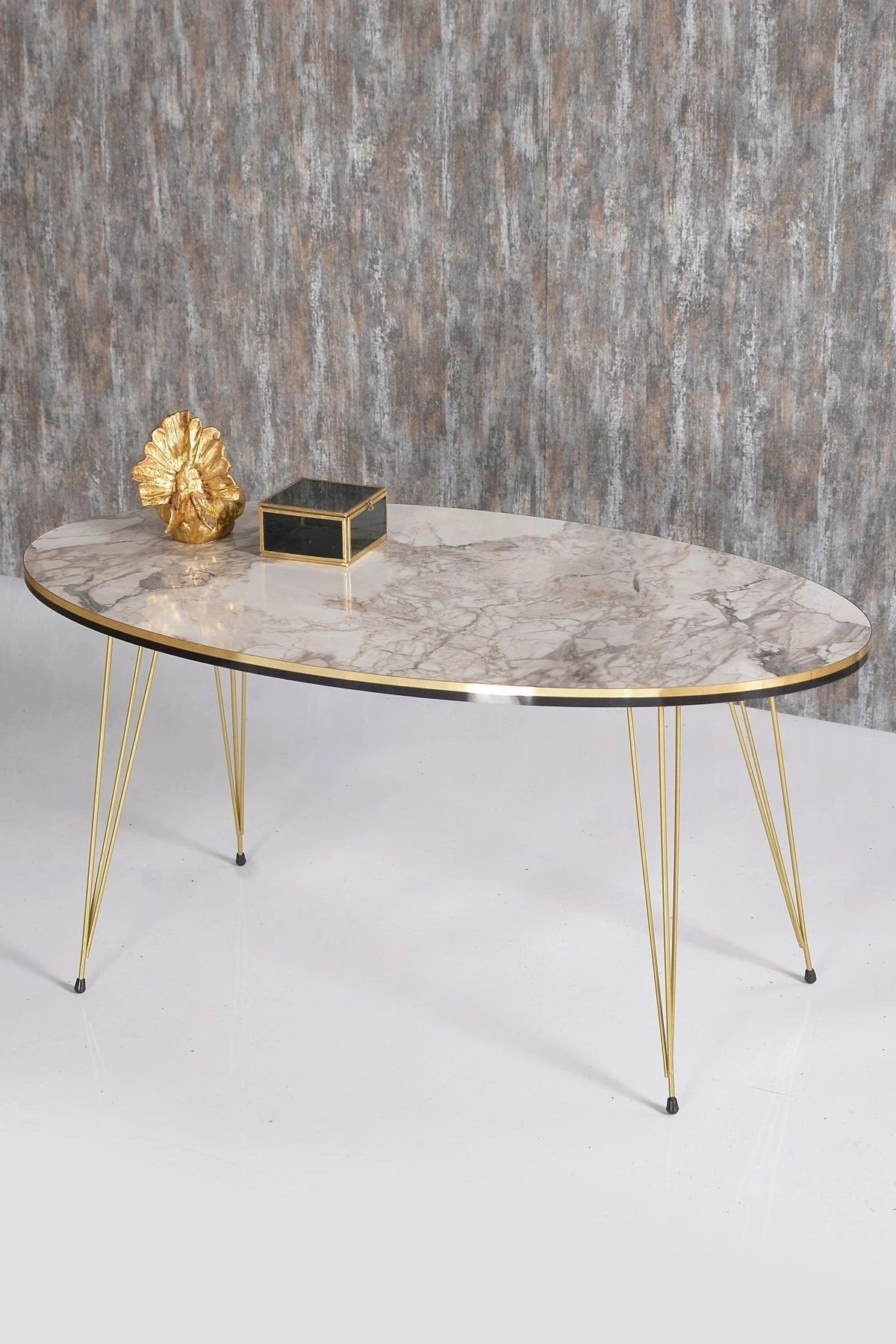 Zigon Sehpa ve Orta Sehpa Elips Set Çift Gold Efes Tel