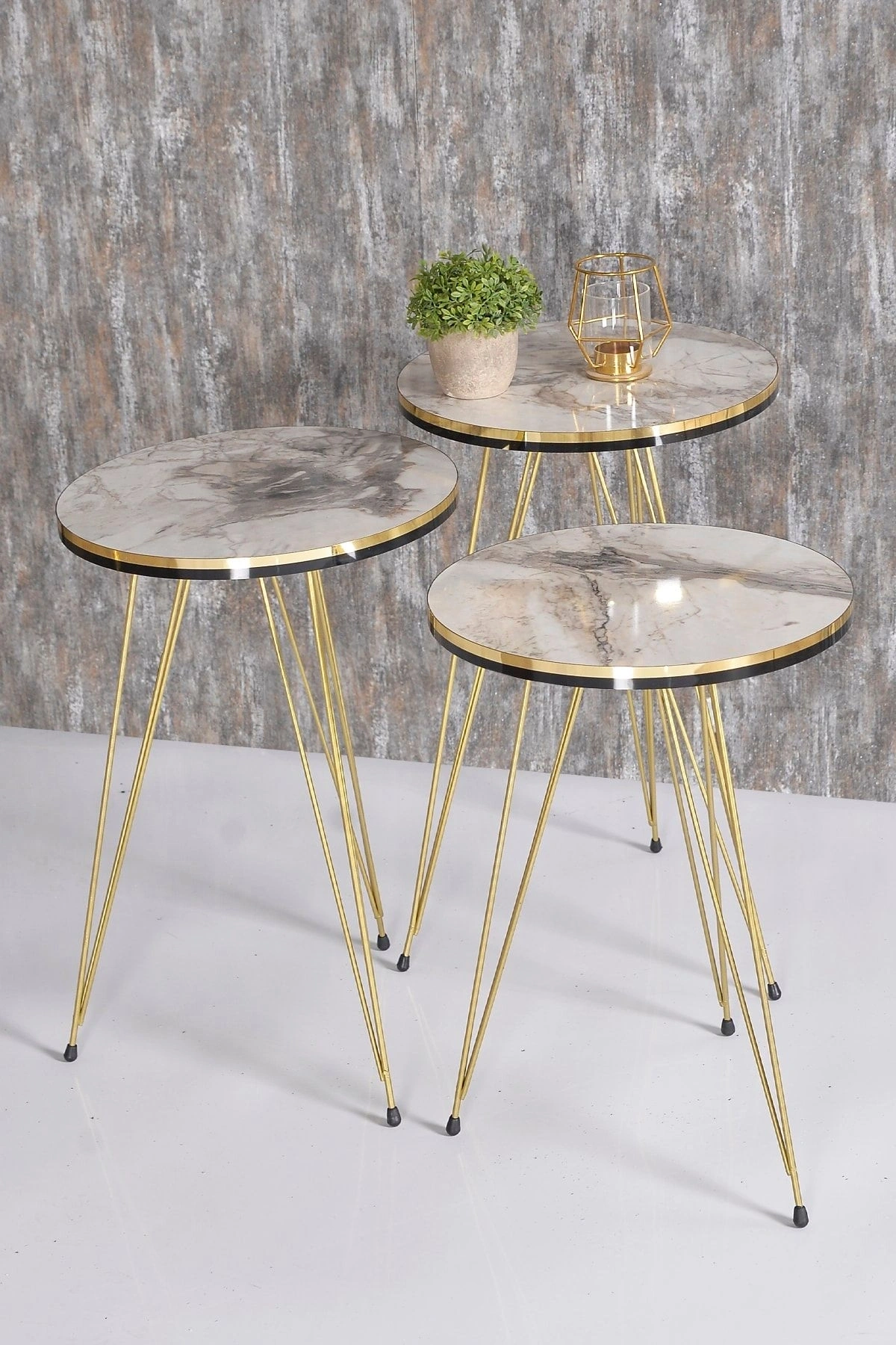 ORTA SEHPA:EN BOY:50*90 ORTA SEHPA YÜKSEKLİK:43 CM ; ZİGON SEHPA TÜM ÜST ÇAPLAR:34 CM ; ZİGON KÜÇÜK YÜKSEKLİK :47 CM ; ZİGON ORTA YÜKSEKLİK :51 CM ; ZİGON BÜYÜK YÜKSEKLİK:55 CM; Kenarları 1. sınıf ÖZEL ÜRETİM SİYAH-GOLD PVC bant ile kaplıdır.; Orta Sehpa ve 3.lü Zigon Sehpa Toplam 4 Parça Gönderim Sağlanmaktadır.. ; ?Kullanılan malzemeTSE, Avrupa Birliği EN, ISO 9001 ve FSC belgelerine sahiptir. ; Ayaklar 1.kalite Metaldir. ; Paketlerde kolay kurulum için gerekli tüm vida ve aksesuarlar bulunmaktadır. ; Ürünün montajı oldukça kolaydır.Basit el aletleri ile kolayca kurulum yapabilirsiniz. ; Hızlı ve hatasız kurulum için parça üzerinde kurulum şeması ile uyumlu parça bulunmaktadır...;