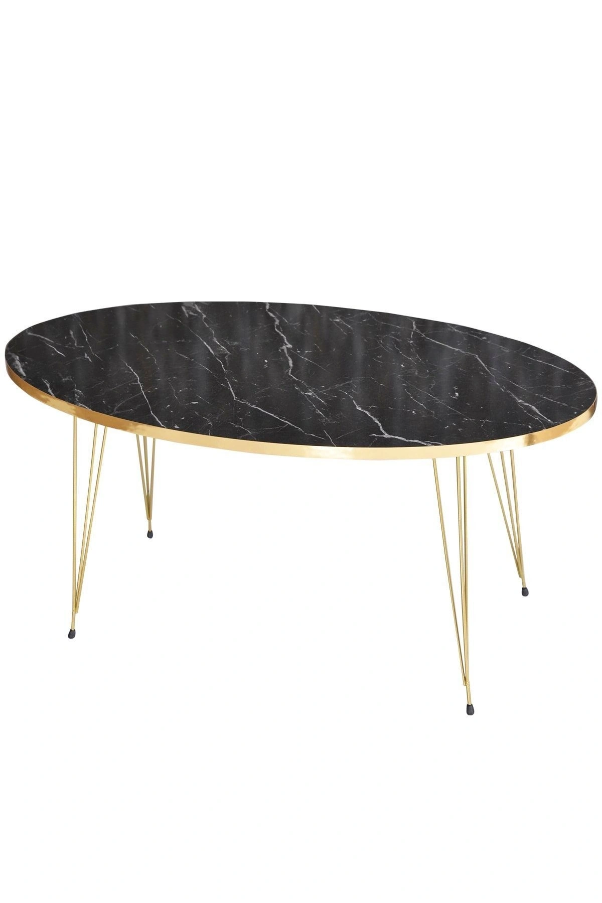Zigon Sehpa ve Orta Sehpa Elips Set Gold Bendir Tel