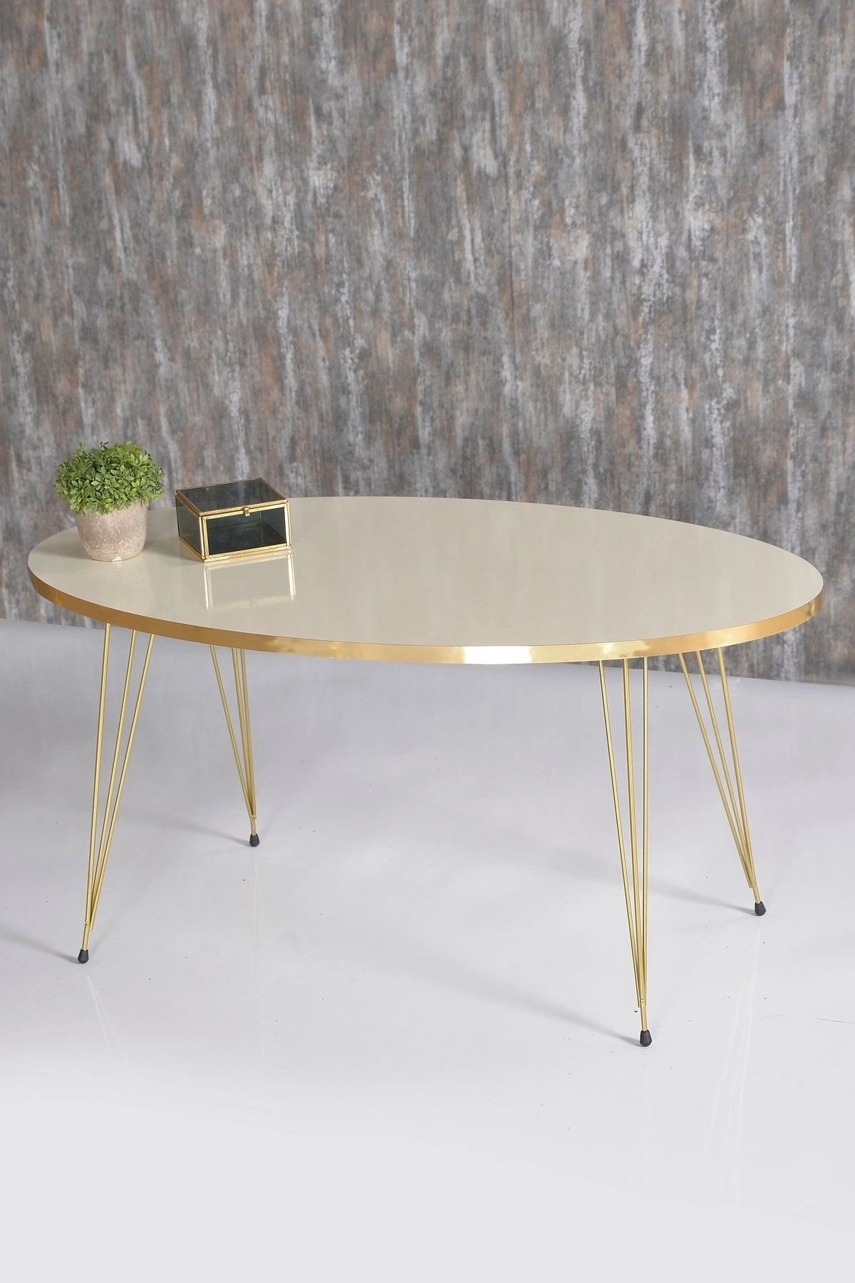 Zigon Sehpa Ve Orta Sehpa Elips Set Gold Krem Tel