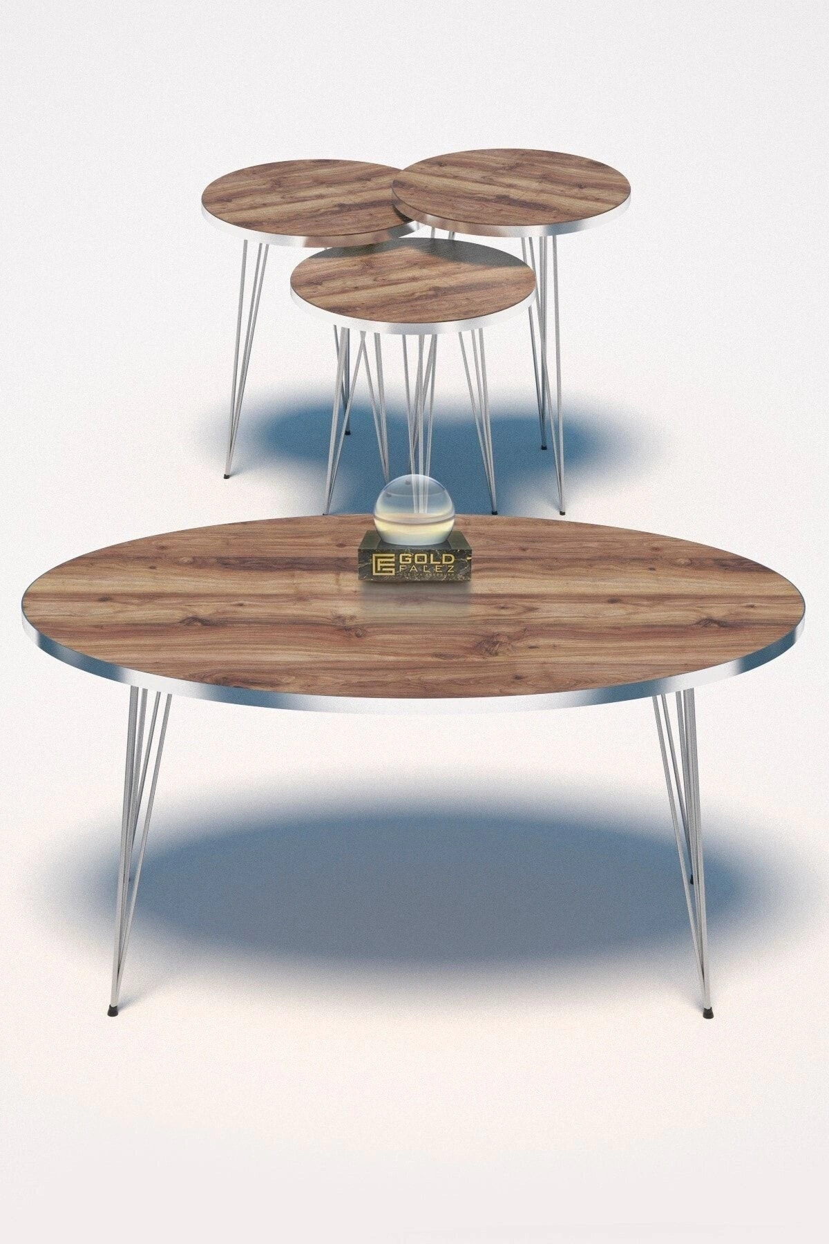 ORTA SEHPA:EN BOY:50*90 ORTA SEHPA YÜKSEKLİK:43 CM ; ZİGON SEHPA TÜM ÜST ÇAPLAR:34 CM ; ZİGON KÜÇÜK YÜKSEKLİK :47 CM ; ZİGON ORTA YÜKSEKLİK :51 CM ; ZİGON BÜYÜK YÜKSEKLİK:55 CM ; Kenarları 1. sınıf ÖZEL ÜRETİM GÜMÜŞ PVC bant ile kaplıdır ; Orta Sehpa ve 3.lü Zigon Sehpa Toplam 4 Parça Gönderim Sağlanmaktadır. ; Kullanılan malzeme TSE, Avrupa Birliği EN, ISO 9001 ve FSC belgelerine sahiptir ; Ayaklar 1.kalite Metaldir. ; Paketlerde kolay kurulum için gerekli tüm vida ve aksesuarlar bulunmaktadır. ; Ürünün montajı oldukça kolaydır. Basit el aletleri ile kolayca kurulum yapabilirsiniz. ; Hızlı ve hatasız kurulum için parça üzerinde kurulum şeması ile uyumlu parça bulunmaktadır. ;