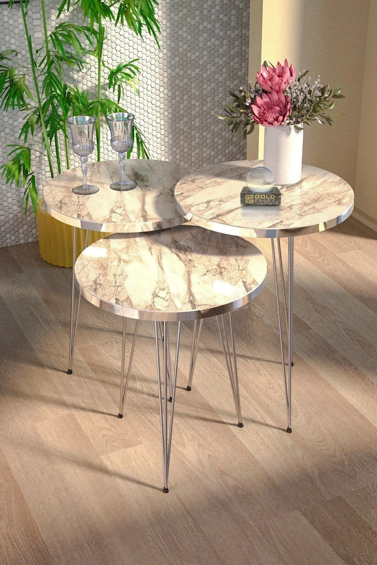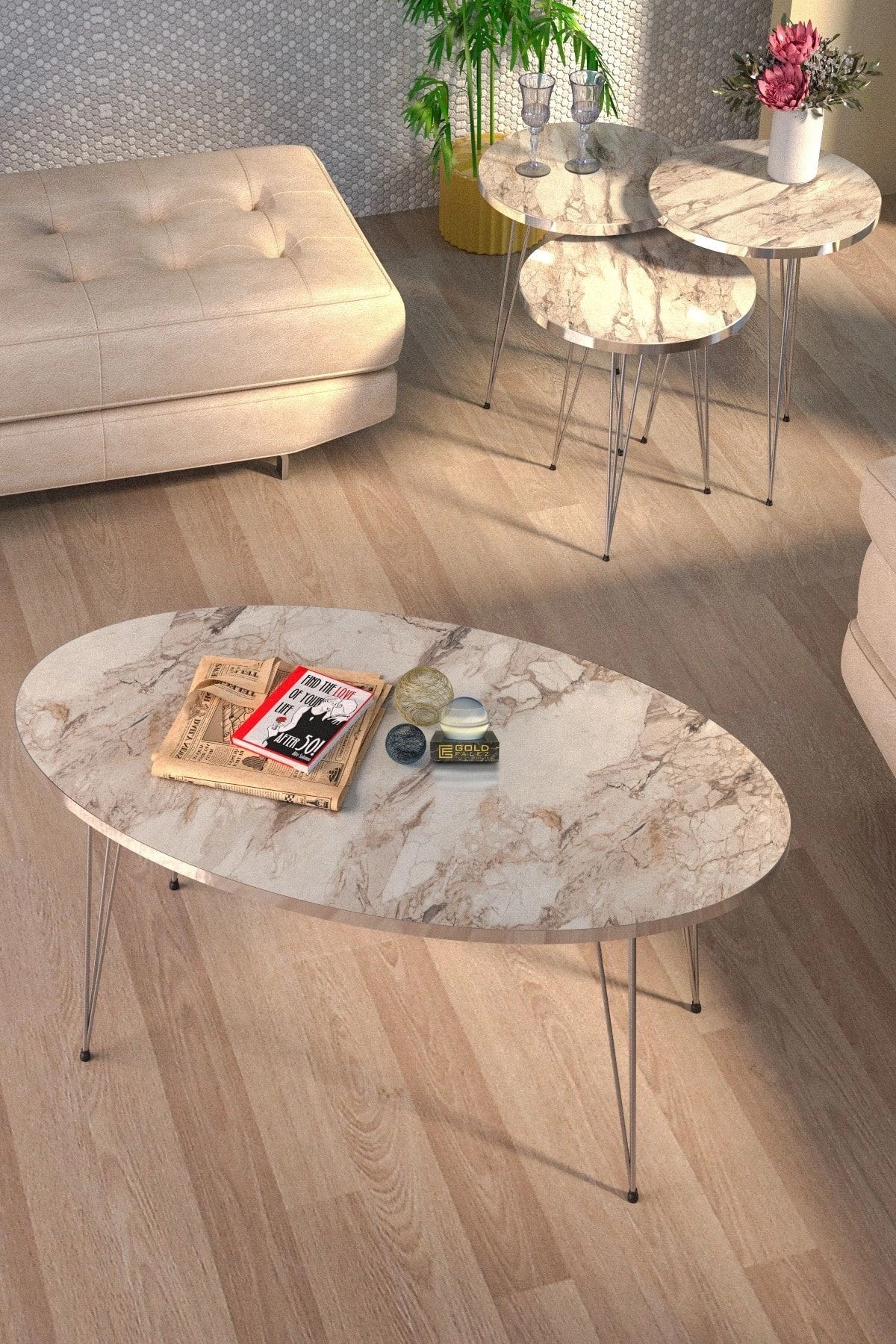ORTA SEHPA:EN BOY:50*90 ORTA SEHPA YÜKSEKLİK:43 CM ; ZİGON SEHPA TÜM ÜST ÇAPLAR:34 CM ; ZİGON KÜÇÜK YÜKSEKLİK :47 CM ; ZİGON ORTA YÜKSEKLİK :51 CM ; ZİGON BÜYÜK YÜKSEKLİK:55 CM ; Kenarları 1. sınıf ÖZEL ÜRETİM GÜMÜŞ PVC bant ile kaplıdır ; Orta Sehpa ve 3.lü zigon Sehpa Toplam 4 Parça Gönderim Sağlanmaktadır. ; Kullanılan malzeme TSE, Avrupa Birliği EN, ISO 9001 ve FSC belgelerine sahiptir ; Ayaklar 1.kalite Metaldir. ; Paketlerde kolay kurulum için gerekli tüm vida ve aksesuarlar bulunmaktadır. ; Ürünün montajı oldukça kolaydır. Basit el aletleri ile kolayca kurulum yapabilirsiniz. ; Hızlı ve hatasız kurulum için parça üzerinde kurulum şeması ile uyumlu parça bulunmaktadır. ;