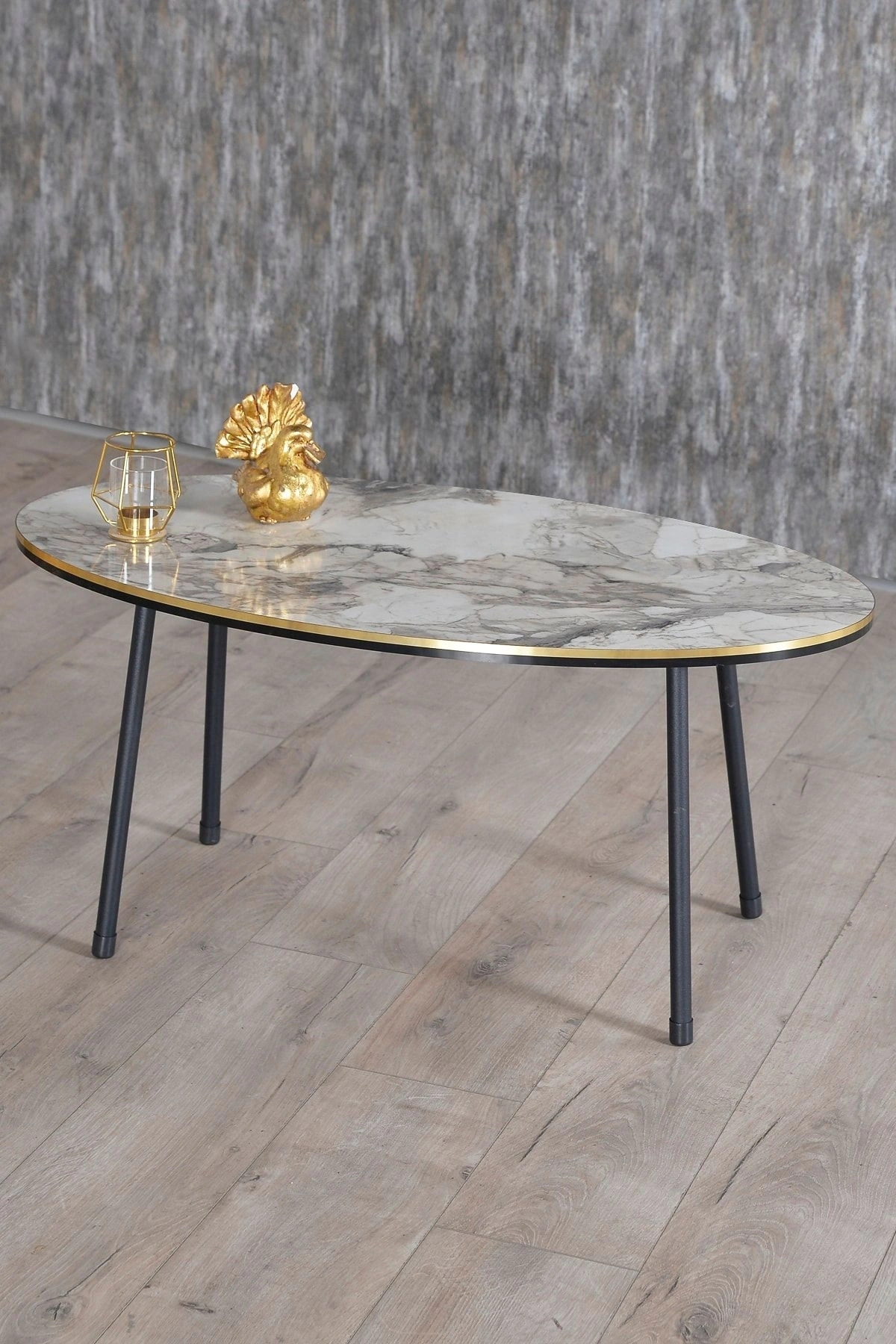 Zigon Sehpa Ve Orta Sehpa Elips Set Siyah Metal Ayak Çift Altın Efes