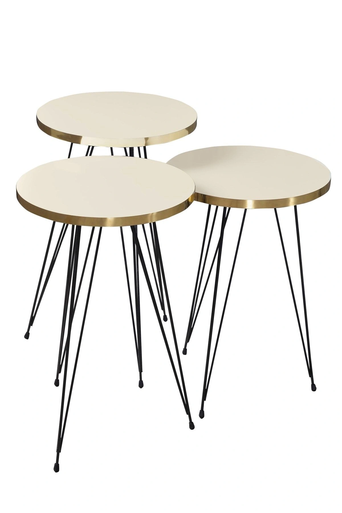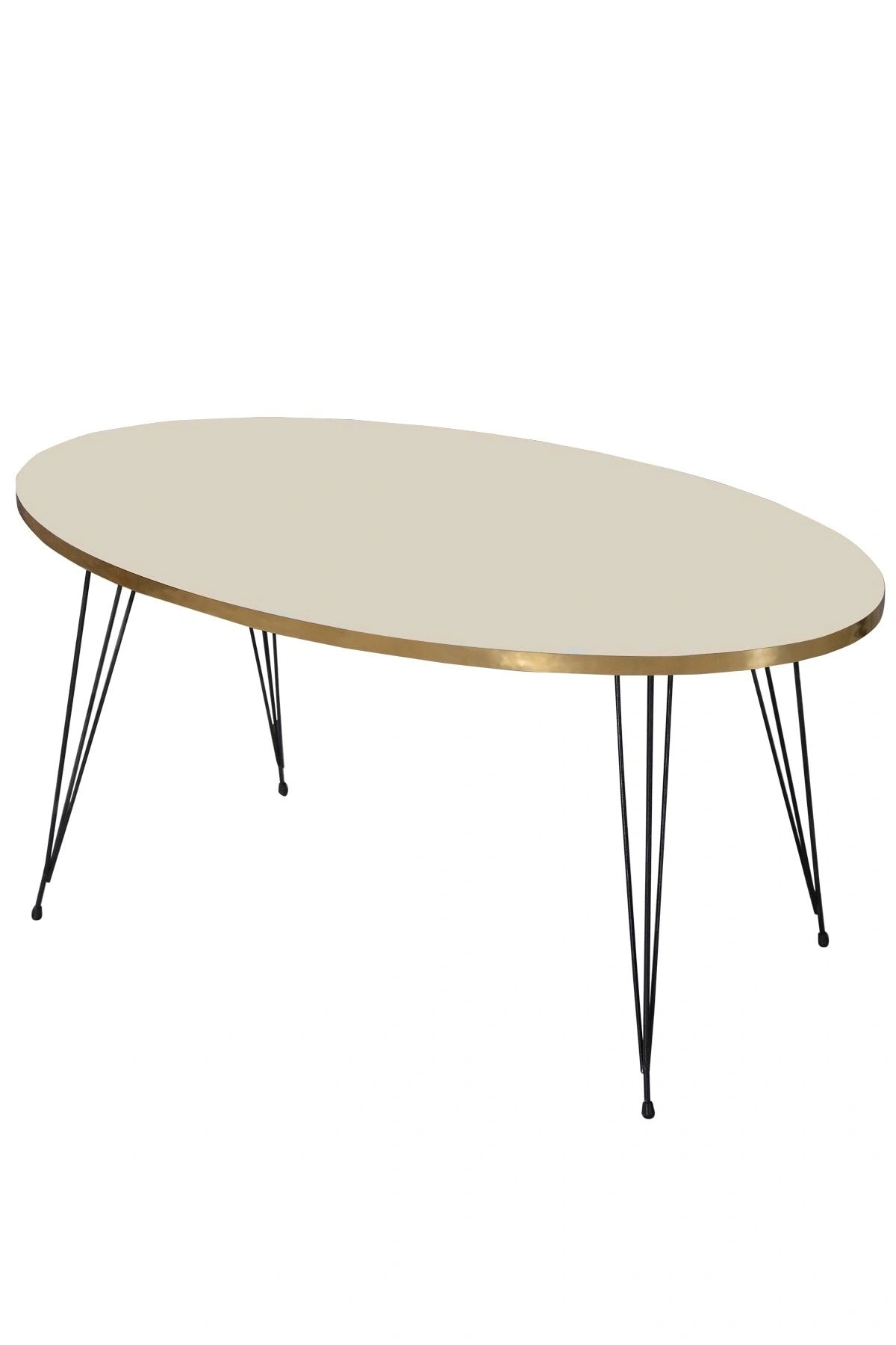 Zigon Sehpa Ve Orta Sehpa Elips Set Siyah Tel Ayak Altın Krem