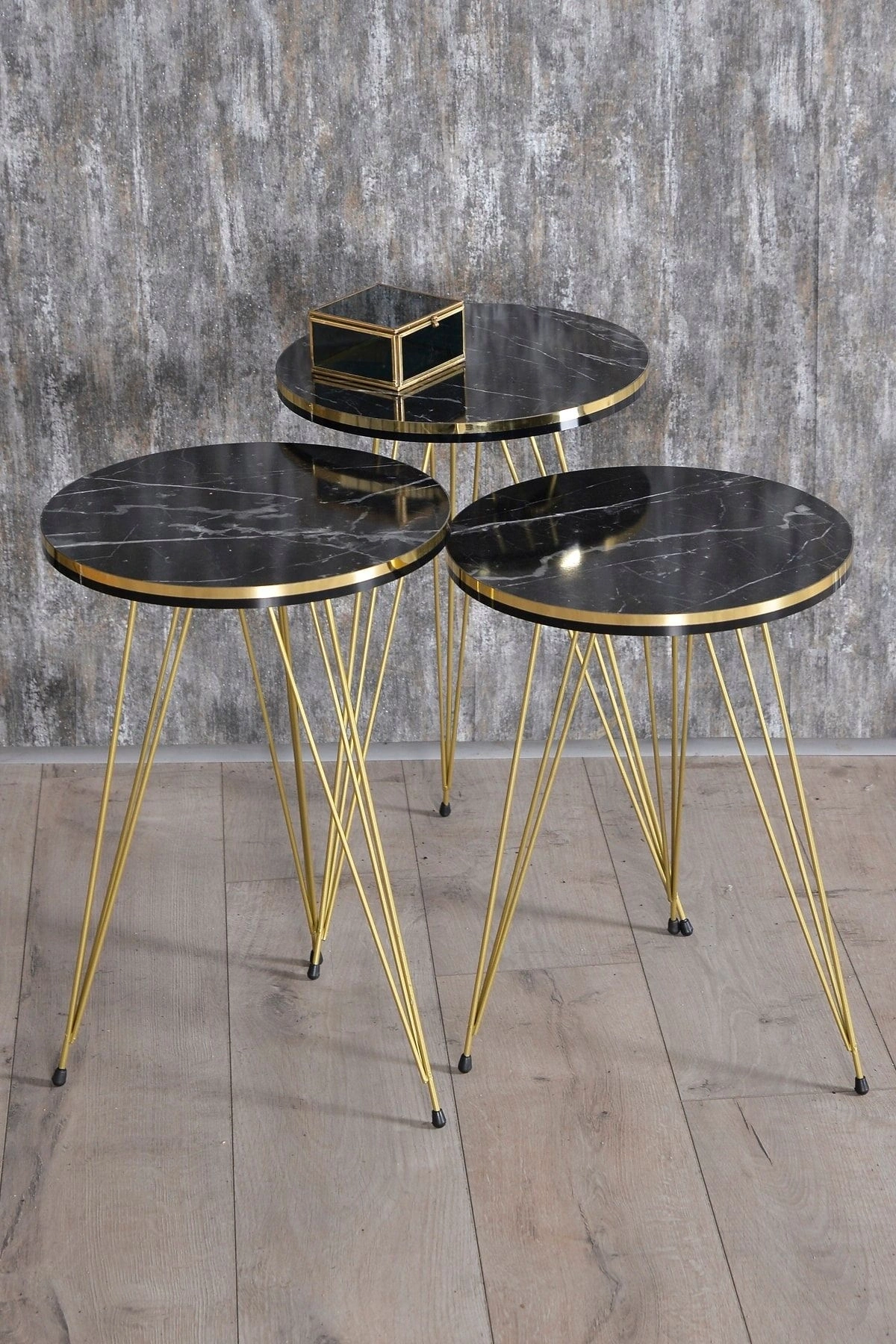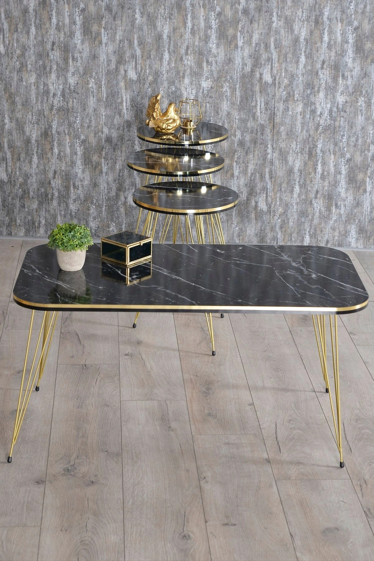 ORTA SEHPA:EN BOY:50*90 ORTA SEHPA YÜKSEKLİK:43 CM ; ZİGON SEHPA TÜM ÜST ÇAPLAR:34 CM ; ZİGON KÜÇÜK YÜKSEKLİK :47 CM ; ZİGON ORTA YÜKSEKLİK :51 CM ; ZİGON BÜYÜK YÜKSEKLİK:55 CM; Kenarları 1. sınıf ÖZEL ÜRETİM SİYAH-GOLD PVC bant ile kaplıdır.; Orta Sehpa ve 3.lü Zigon Sehpa Toplam 4 Parça Gönderim Sağlanmaktadır.. ; ?Kullanılan malzemeTSE, Avrupa Birliği EN, ISO 9001 ve FSC belgelerine sahiptir. ; Ayaklar 1.kalite Metaldir. ; Paketlerde kolay kurulum için gerekli tüm vida ve aksesuarlar bulunmaktadır. ; Ürünün montajı oldukça kolaydır.Basit el aletleri ile kolayca kurulum yapabilirsiniz. ; Hızlı ve hatasız kurulum için parça üzerinde kurulum şeması ile uyumlu parça bulunmaktadır.;