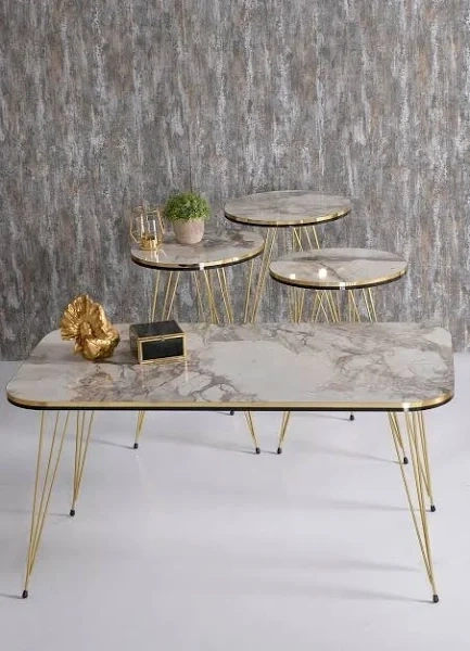 Zigon Sehpa Ve Orta Sehpa Kr Set Çift Gold Efes Tel
