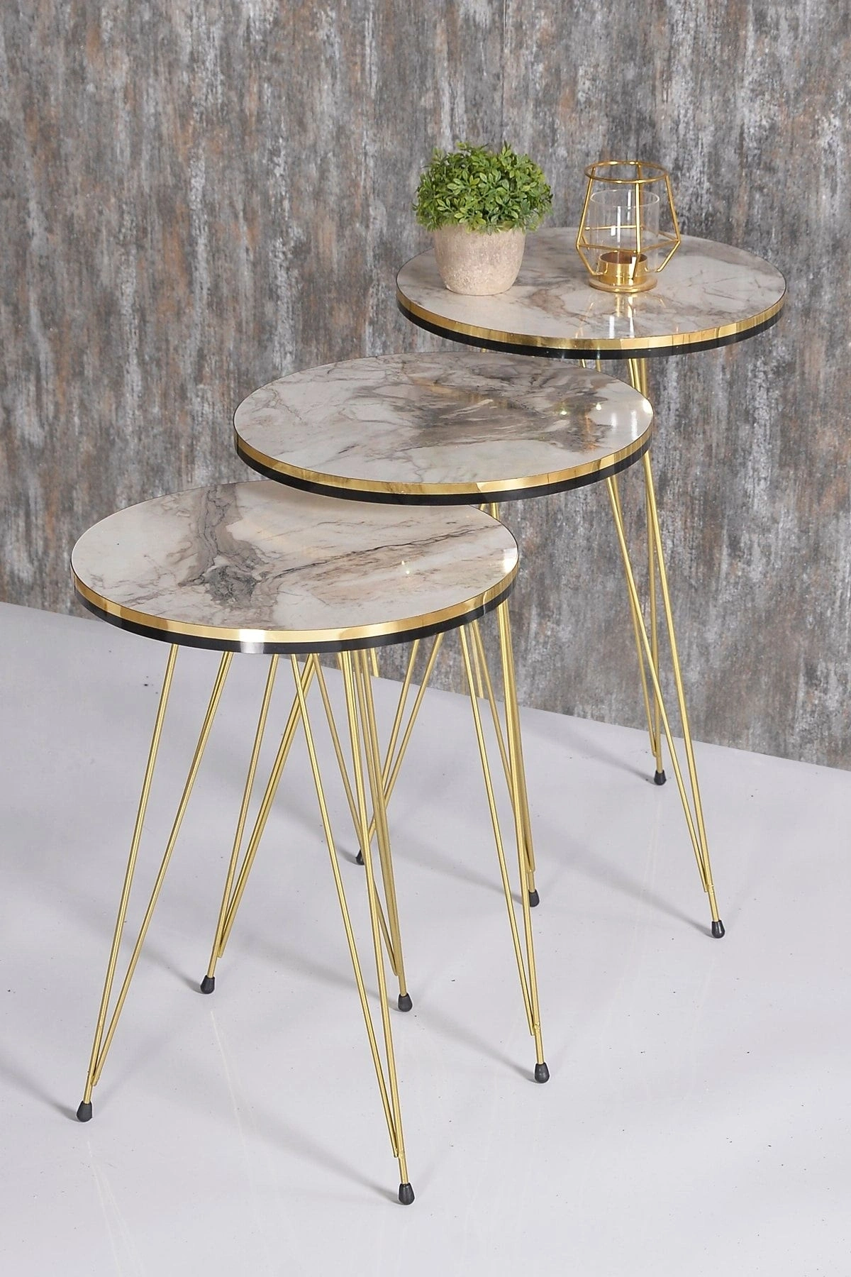 ORTA SEHPA:EN BOY:50*90 ORTA SEHPA YÜKSEKLİK:43 CM ; ZİGON SEHPA TÜM ÜST ÇAPLAR:34 CM ; ZİGON KÜÇÜK YÜKSEKLİK :47 CM ; ZİGON ORTA YÜKSEKLİK :51 CM ; ZİGON BÜYÜK YÜKSEKLİK:55 CM; Kenarları 1. sınıf ÖZEL ÜRETİM SİYAH-GOLD PVC bant ile kaplıdır.; Orta Sehpa ve 3.lü Zigon Sehpa Toplam 4 Parça Gönderim Sağlanmaktadır.. ; ?Kullanılan malzemeTSE, Avrupa Birliği EN, ISO 9001 ve FSC belgelerine sahiptir. ; Ayaklar 1.kalite Metaldir. ; Paketlerde kolay kurulum için gerekli tüm vida ve aksesuarlar bulunmaktadır. ; Ürünün montajı oldukça kolaydır.Basit el aletleri ile kolayca kurulum yapabilirsiniz. ; Hızlı ve hatasız kurulum için parça üzerinde kurulum şeması ile uyumlu parça bulunmaktadır.;