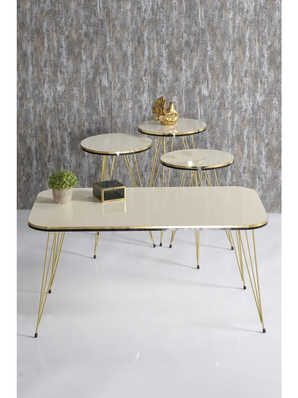 Zigon Sehpa Ve Orta Sehpa Kr Set Çift Gold Krem Tel Ayak