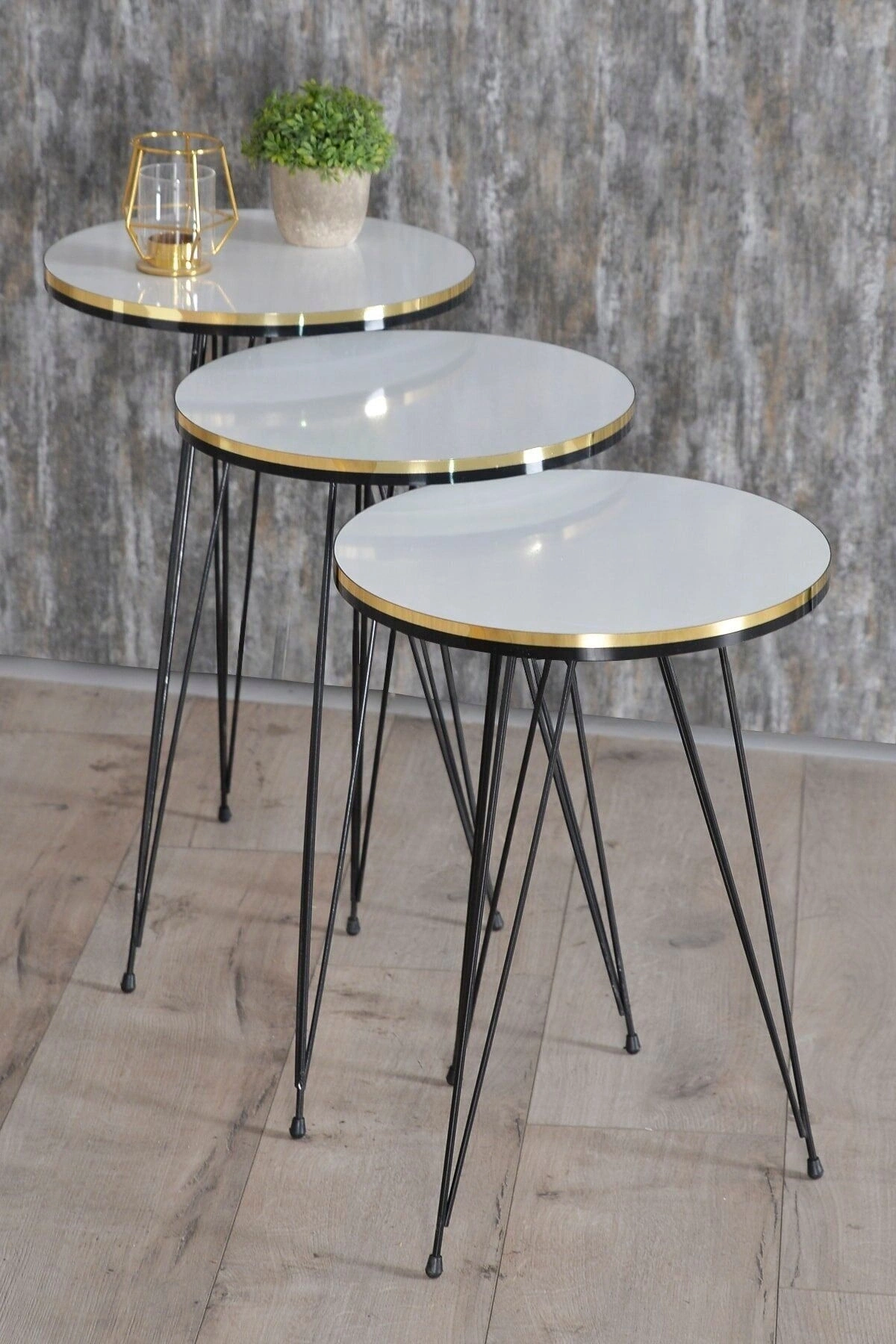 ORTA SEHPA:EN BOY:50*90 ORTA SEHPA YÜKSEKLİK:43 CM ; ZİGON SEHPA TÜM ÜST ÇAPLAR:34 CM ; ZİGON KÜÇÜK YÜKSEKLİK :47 CM ; ZİGON ORTA YÜKSEKLİK :51 CM ; ZİGON BÜYÜK YÜKSEKLİK:55 CM ; Kenarları 1. sınıf ÖZEL ÜRETİM SİYAH-GOLD PVC bant ile kaplıdır. ; Orta Sehpa ve 3.lü Zigon Sehpa Toplam 4 Parça Gönderim Sağlanmaktadır.. ; ?Kullanılan malzemeTSE, Avrupa Birliği EN, ISO 9001 ve FSC belgelerine sahiptir. ; Ayaklar 1.kalite Metaldir. ; Paketlerde kolay kurulum için gerekli tüm vida ve aksesuarlar bulunmaktadır. ; Ürünün montajı oldukça kolaydır.Basit el aletleri ile kolayca kurulum yapabilirsiniz. ; Hızlı ve hatasız kurulum için parça üzerinde kurulum şeması ile uyumlu parça bulunmaktadır. ;