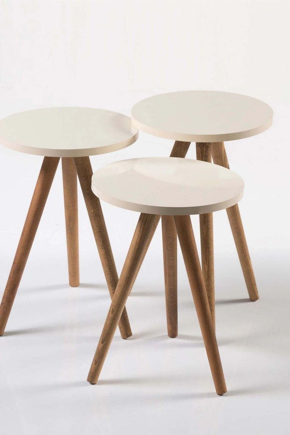 Zigon Sehpa Ve Orta Sehpa Set Ahşap Torna Elips Krem