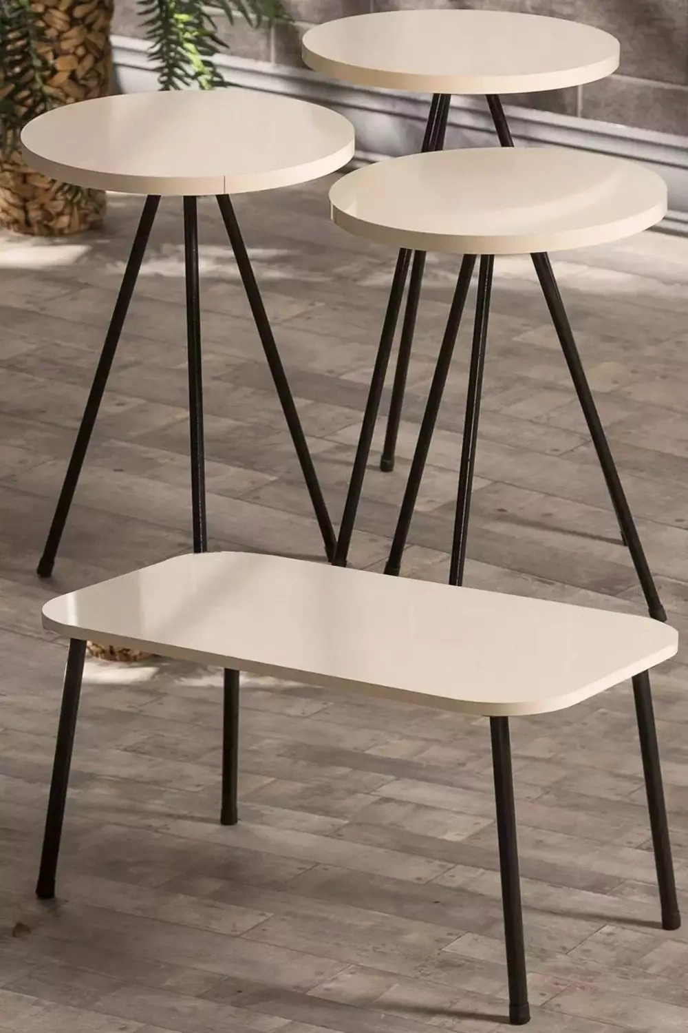 Zigon Sehpa Ve Orta Sehpa Set Kr Metal Krem